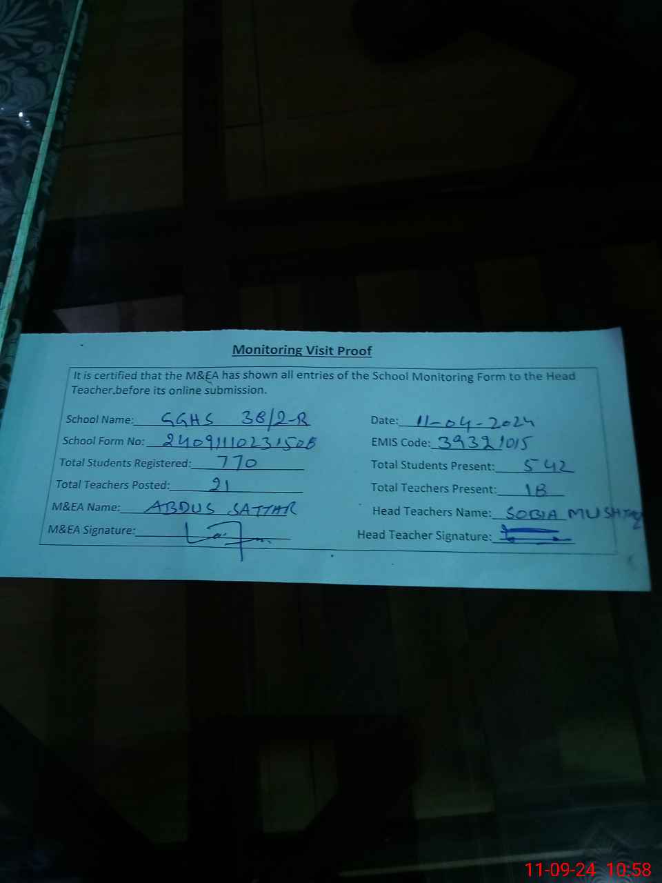 | EMIS Code: 39321015 | Name of School: GGHS CHAK NO. 38/2-RA | |||