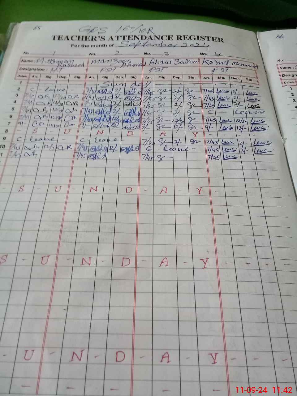 | CNIC | Full Name | Designation | R/C | Absence During Last Calender Month |