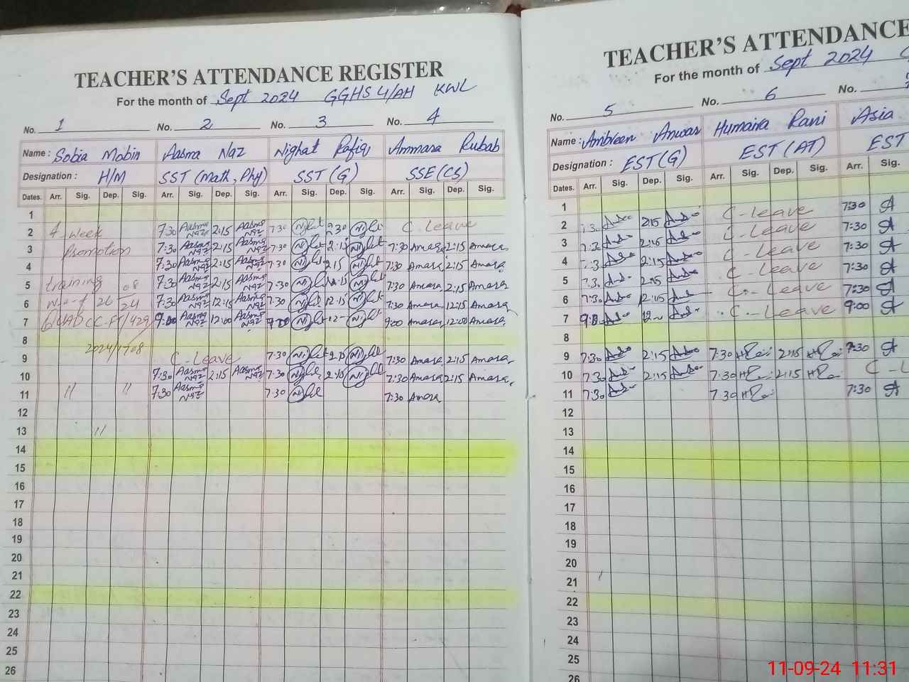 | No. of Students Present - Female | 16 | 0 | 30 | 28 | 25 | 29 | 31 | 27 | 60 | 48 | 40 | 52 | 45 | 431 | ||