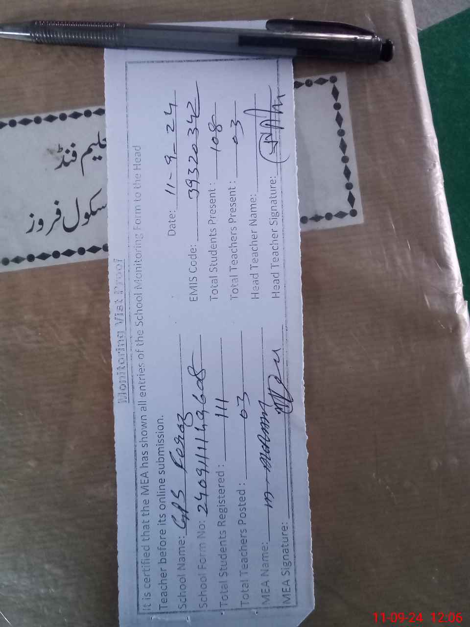 | EMIS Code: 39320342 | Name of School: GPS FEROZE | |||