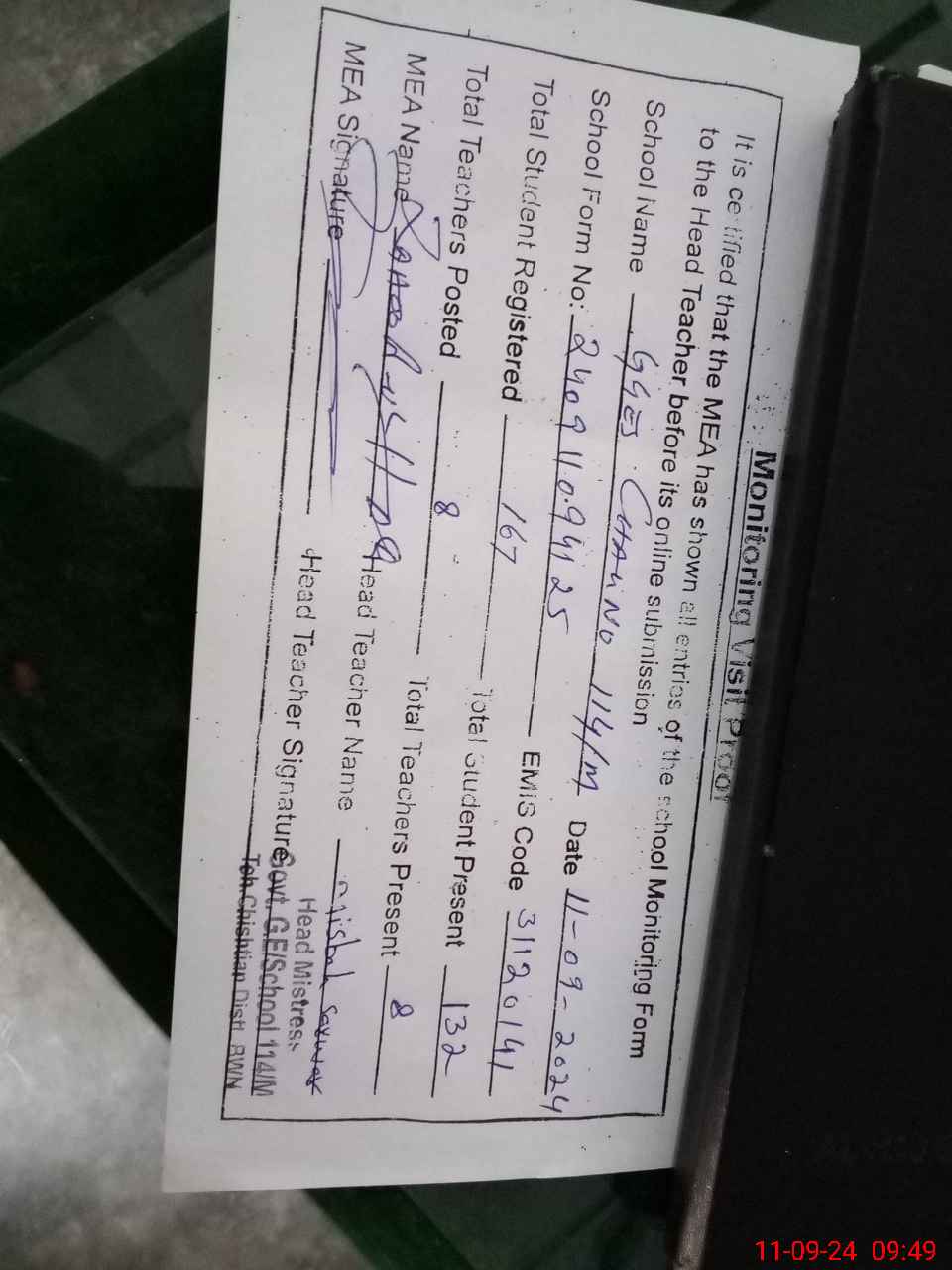 | EMIS Code: 31120141 | Name of School: GGES CHAK NO. 114/M | |||