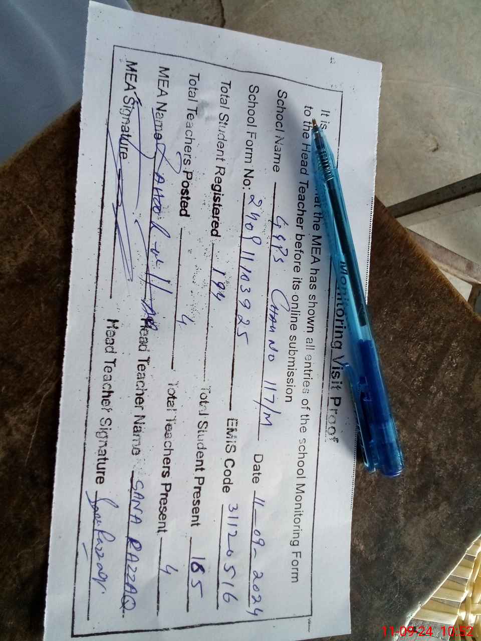 | EMIS Code: 31120516 | Name of School: GGPS CHAK NO. 117 MURAD | |||