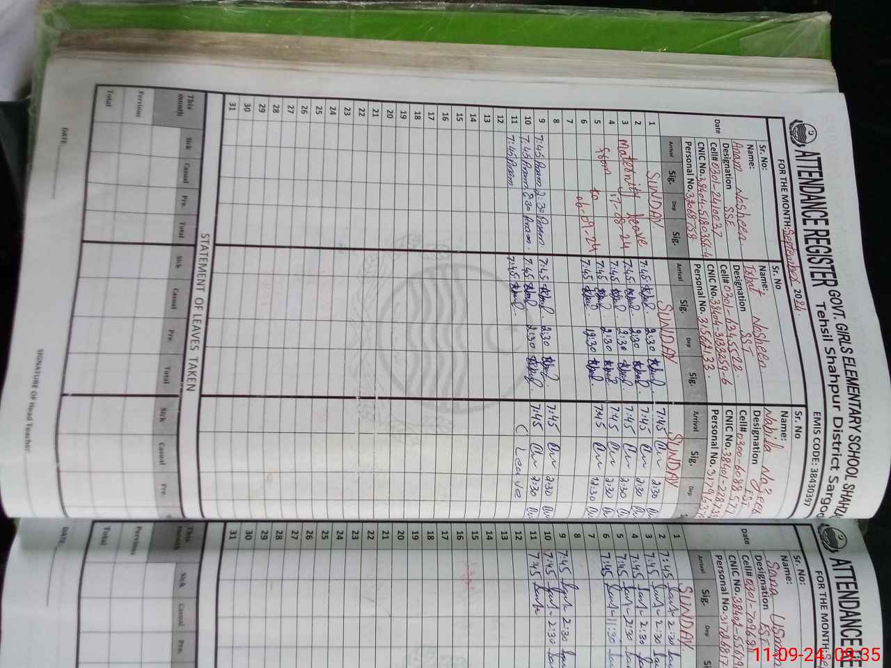| Name: IR**** NO**** Designation: (School Headmaster's/Headmistress's) SST Phone/Cell Number: 03**** |