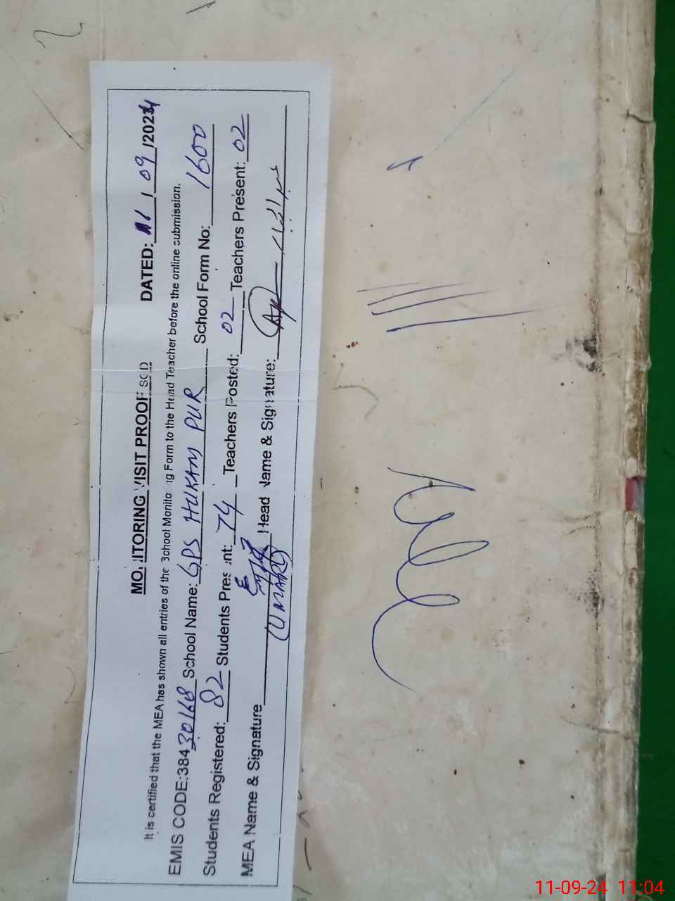 | EMIS Code: 38430168 | Name of School: GPS HUKAM PUR | |||