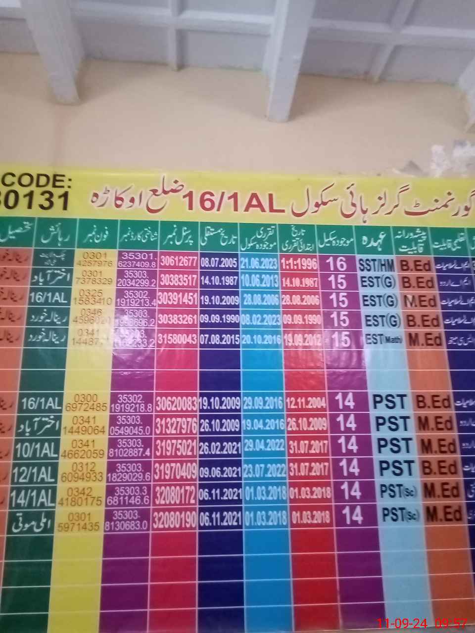 | EMIS Code: 39330131 | Name of School: GGHS 16/1-AL | |||