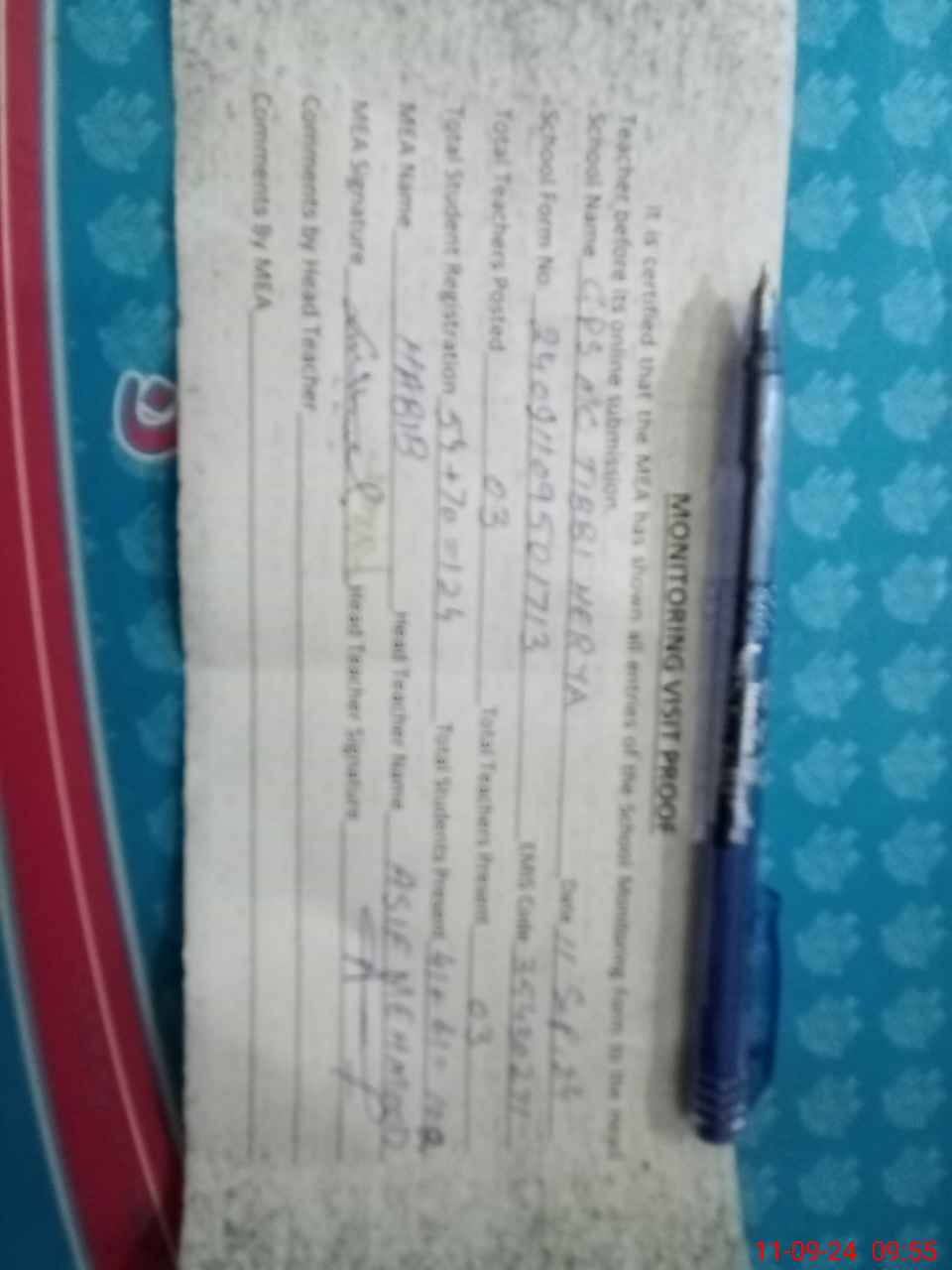 | Attendance Register | Head Teacher | MEA with School | Visit Proof |