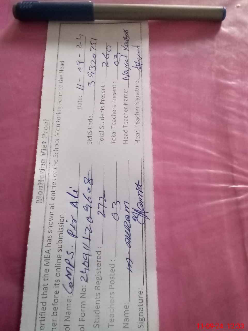 | EMIS Code: 39320751 | Name of School: GMPS PIR ALI | |||