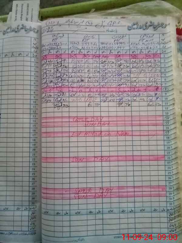 | CNIC | Full Name | Designation | R/C | Absence During Last Calender Month |