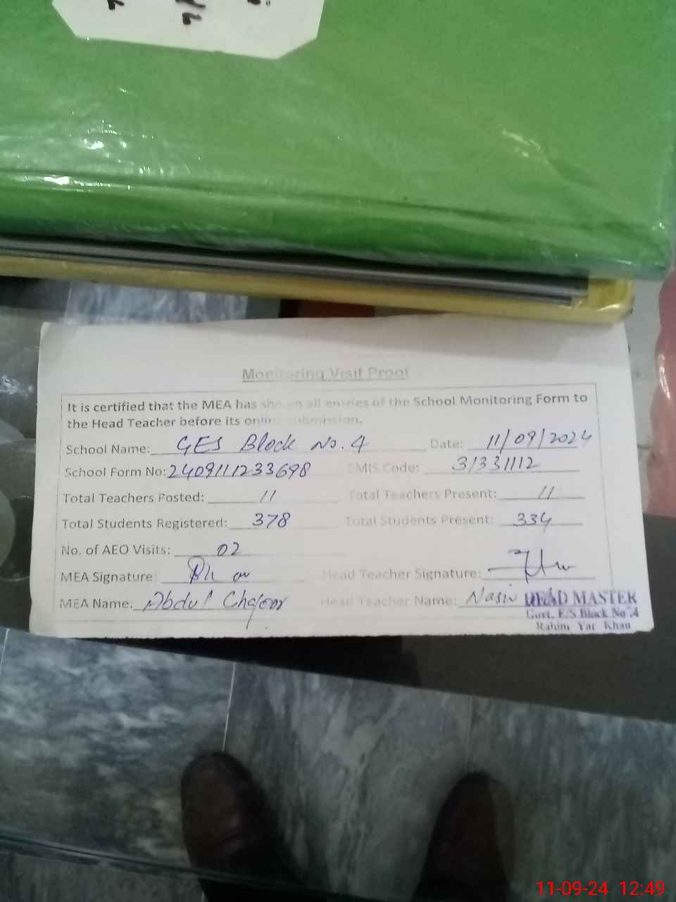 | EMIS Code: 31331112 | Name of School: GES MC BLOCK NO. 4 | |||