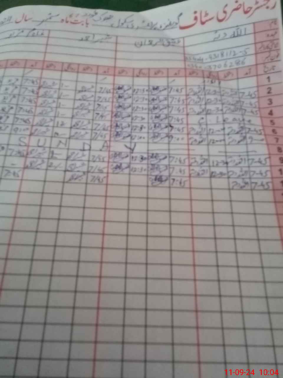 | Name: An**** URe**** Designation: (School Headmaster's/Headmistress's) PST Phone/Cell Number: 03**** |