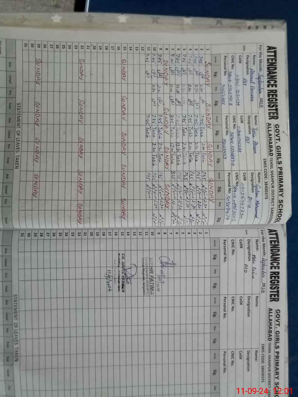 | Name: AK**** PA**** Designation: (School Headmaster's/Headmistress's) PST Phone/Cell Number: 03**** |