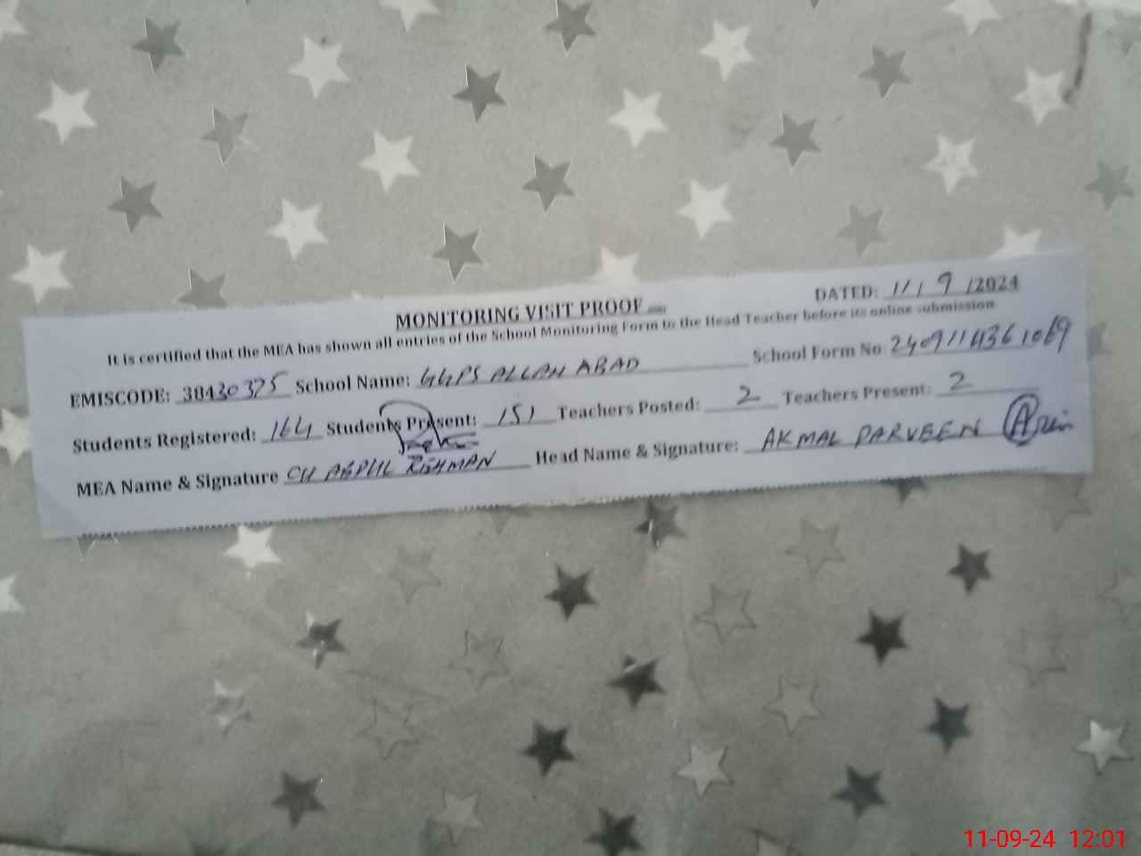 | EMIS Code: 38430375 | Name of School: GGPS ALLAH ABAD | |||