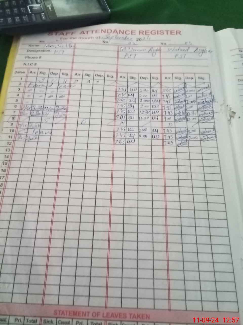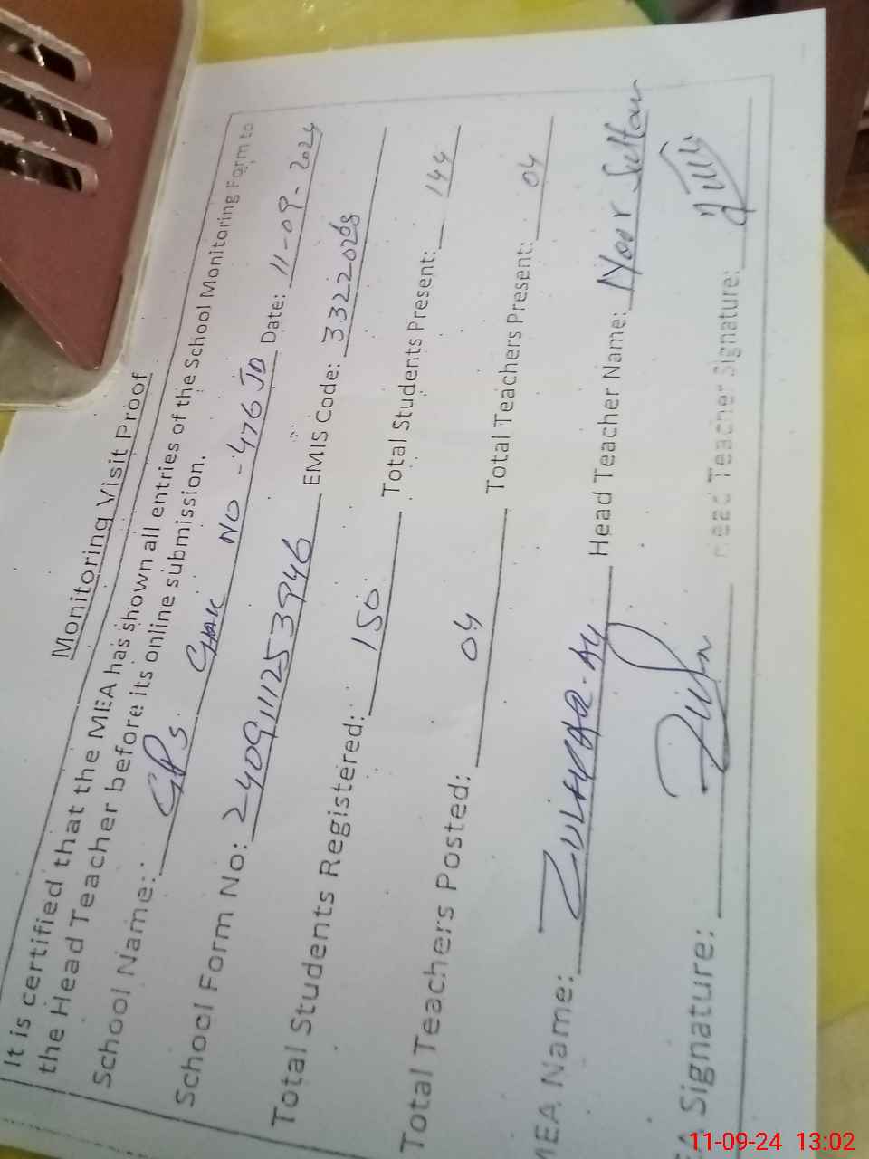 | Name: No**** Su**** Designation: (School Headmaster's/Headmistress's) PST Phone/Cell Number: 03**** |