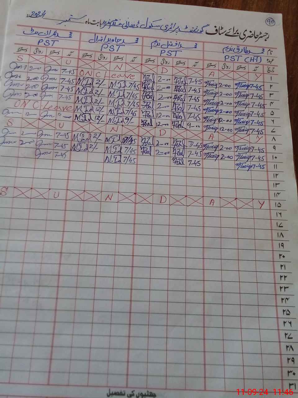 | CNIC | Full Name | Designation | R/C | Absence During Last Calender Month |