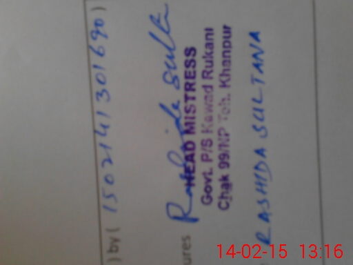 | Name: RA**** SU**** Designation: (School Headmaster's/Headmistress's) PST Phone/Cell Number: 03**** |