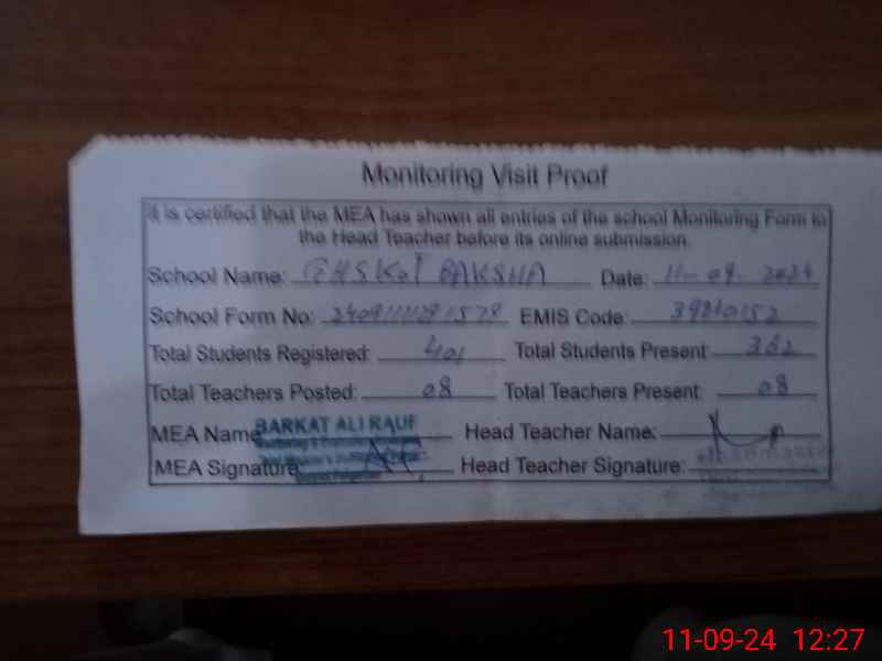 | EMIS Code: 39210152 | Name of School: GHS KOT BAKHSHA | |||