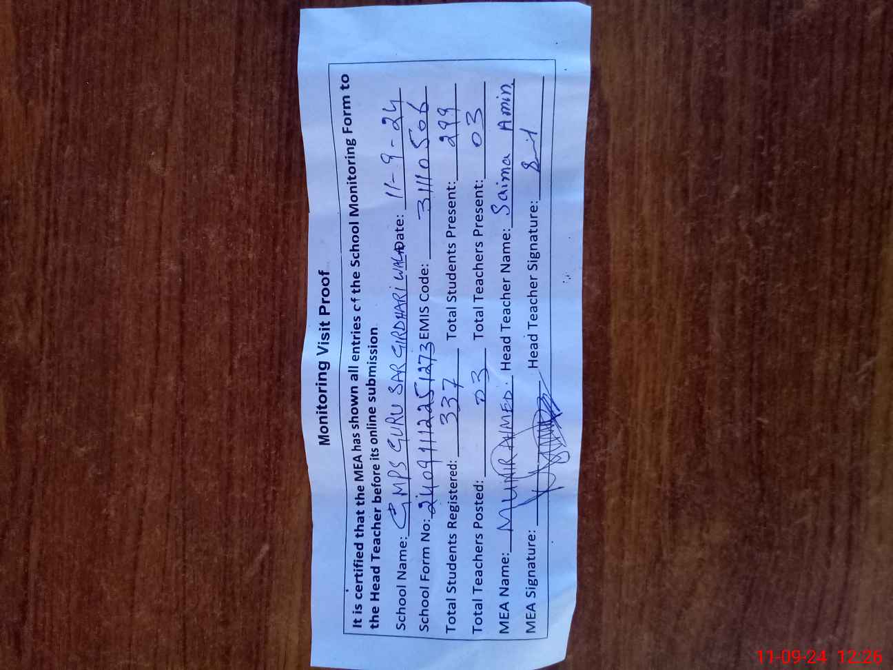 | EMIS Code: 31110506 | Name of School: GMPS GURU SAR GIRDHARI WALA EAST | |||