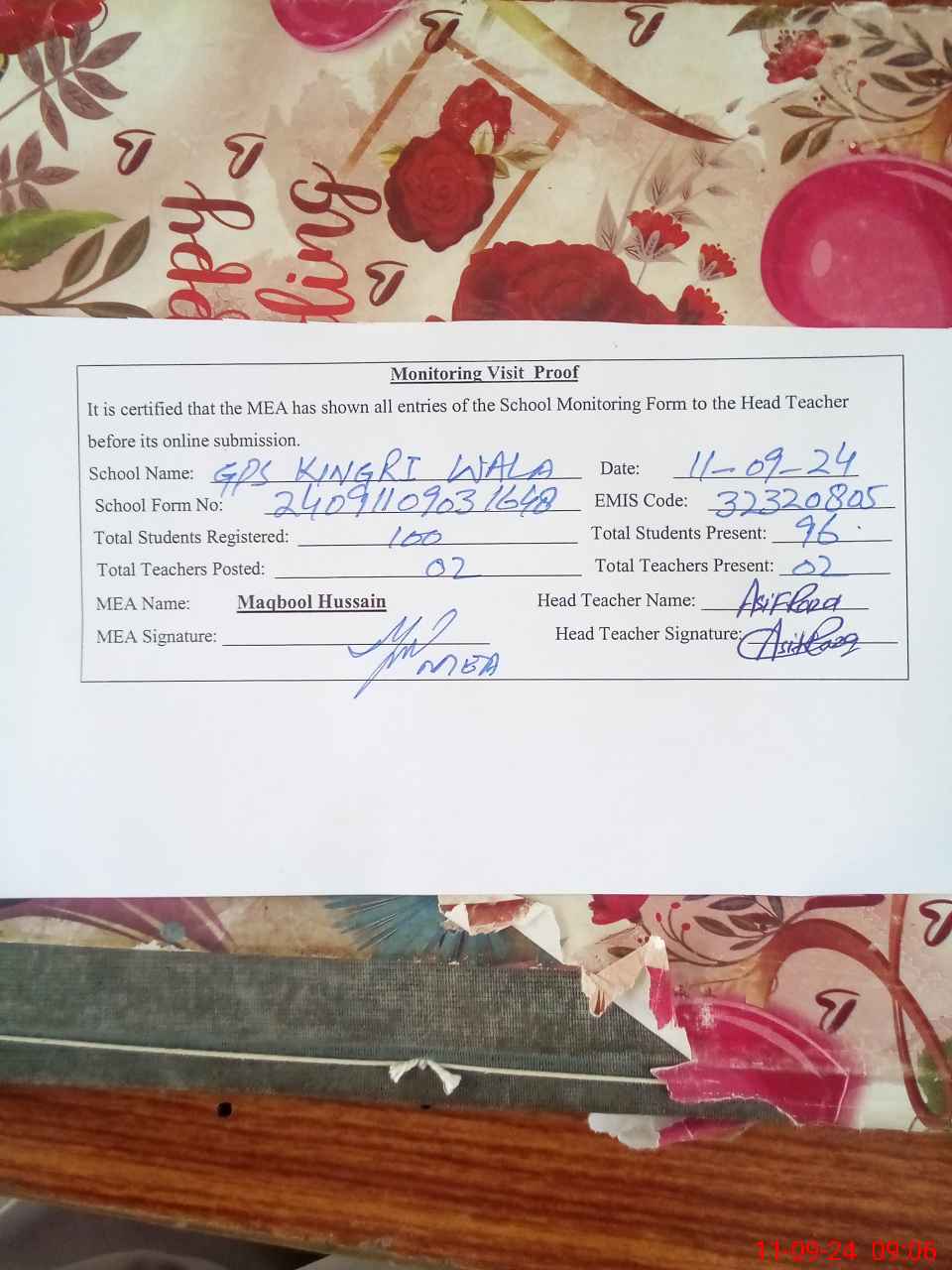 | EMIS Code: 32320805 | Name of School: GPS KINGRI WALA | |||
