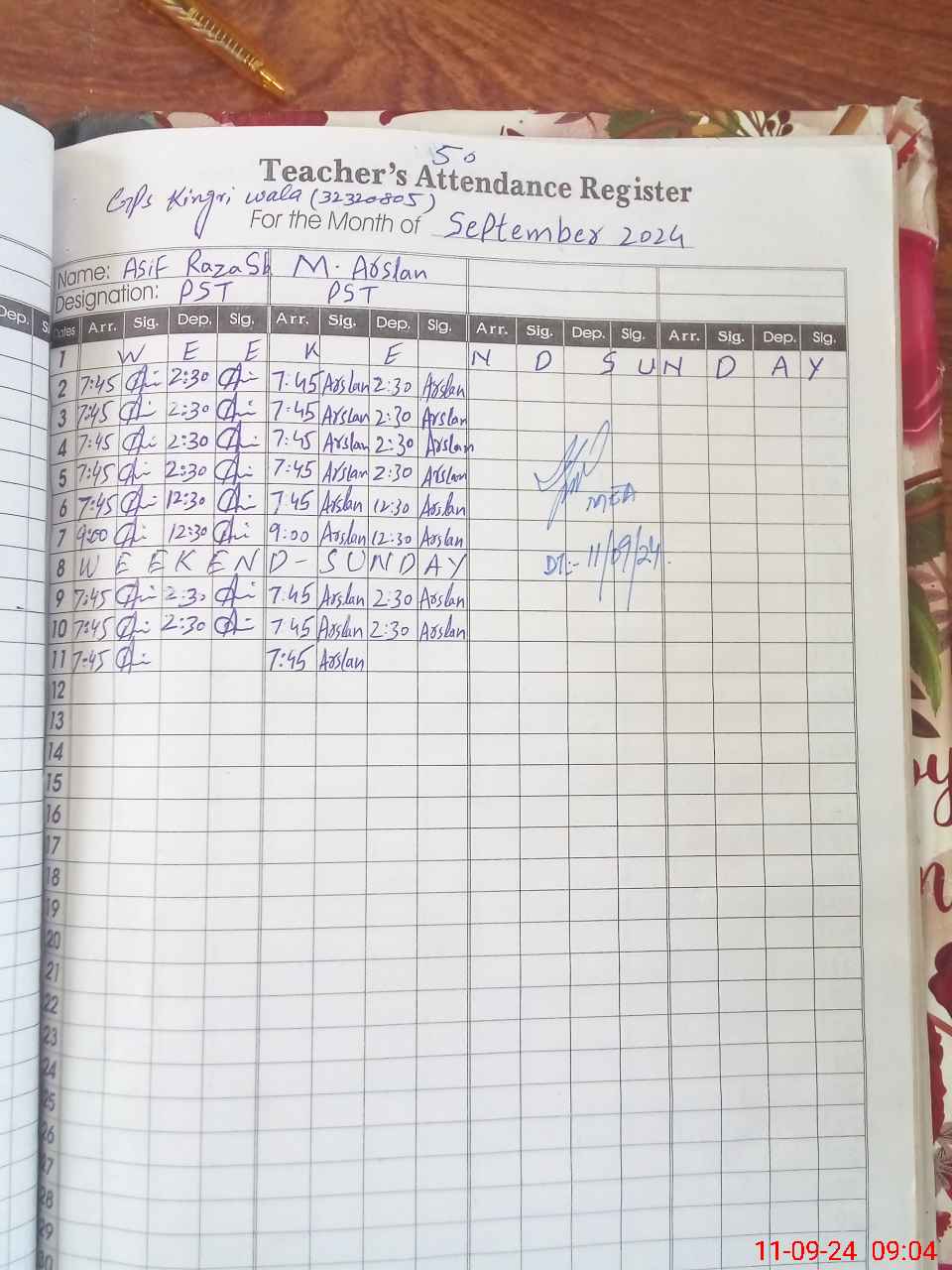 | Name: AS**** RA**** Designation: (School Headmaster's/Headmistress's) ESE Phone/Cell Number: 03**** |