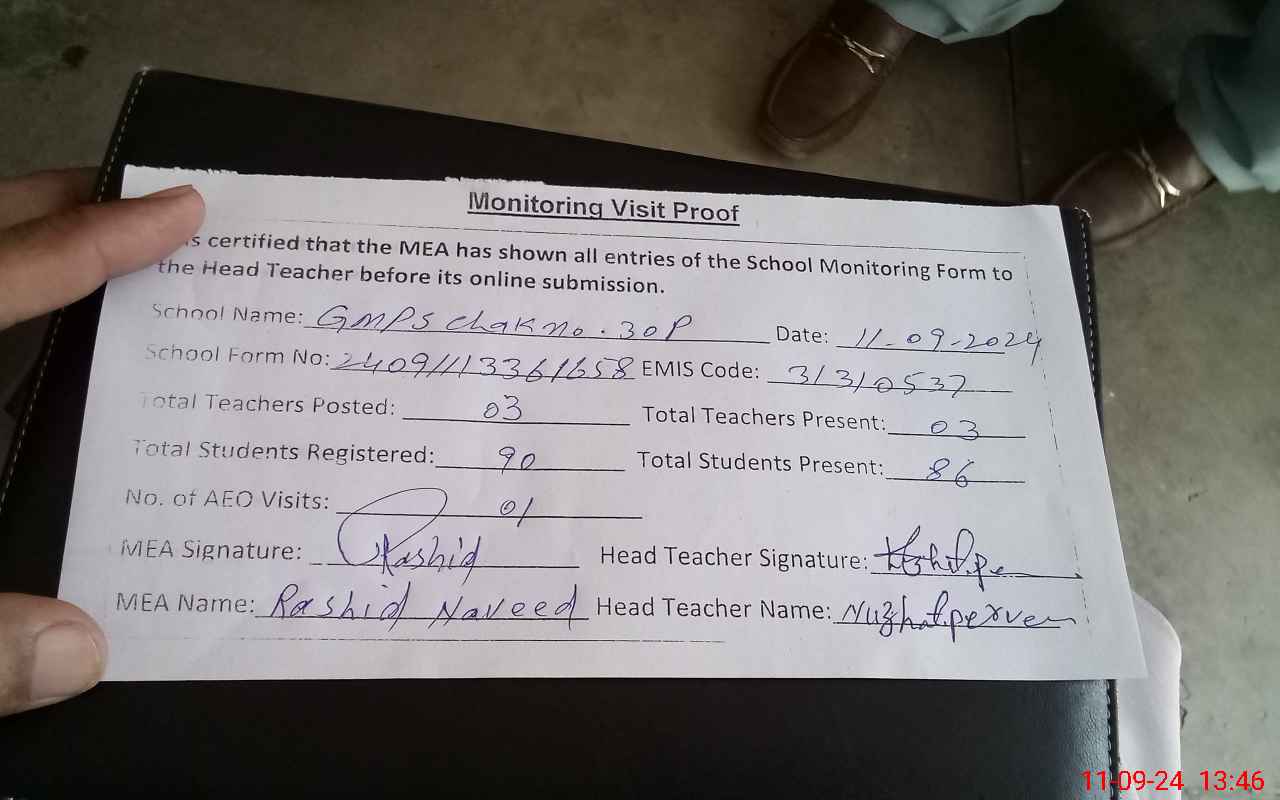 | EMIS Code: 31310537 | Name of School: GMPS CHAK NO 30/P | |||