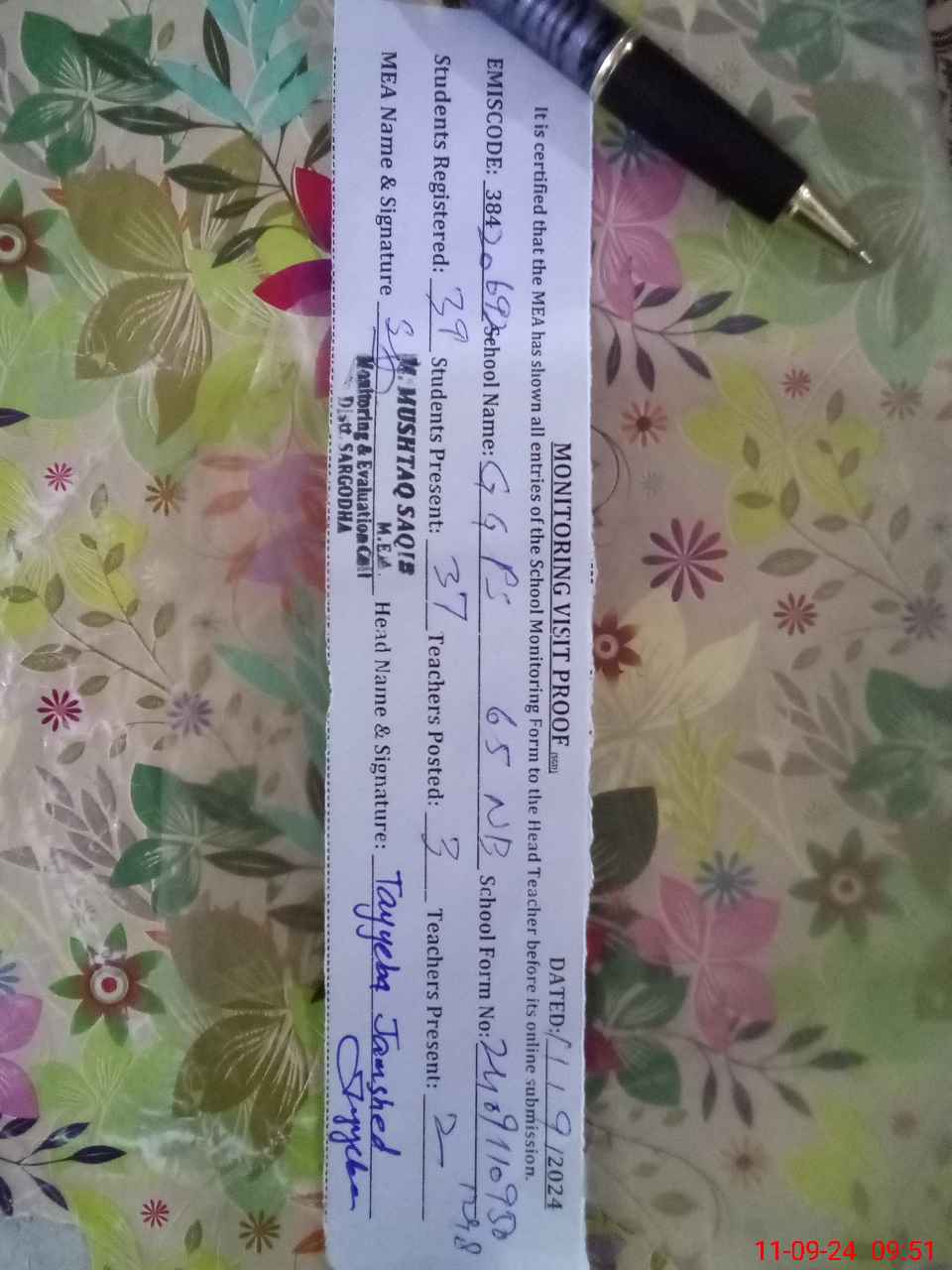 | EMIS Code: 38420692 | Name of School: GGPS CHAK NO.65 NB | |||