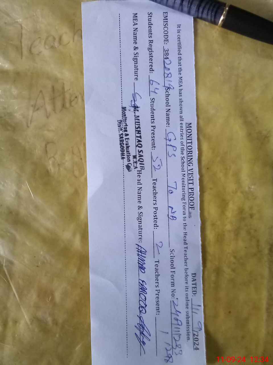| EMIS Code: 38420819 | Name of School: GPS CHAK NO.70 NB | |||