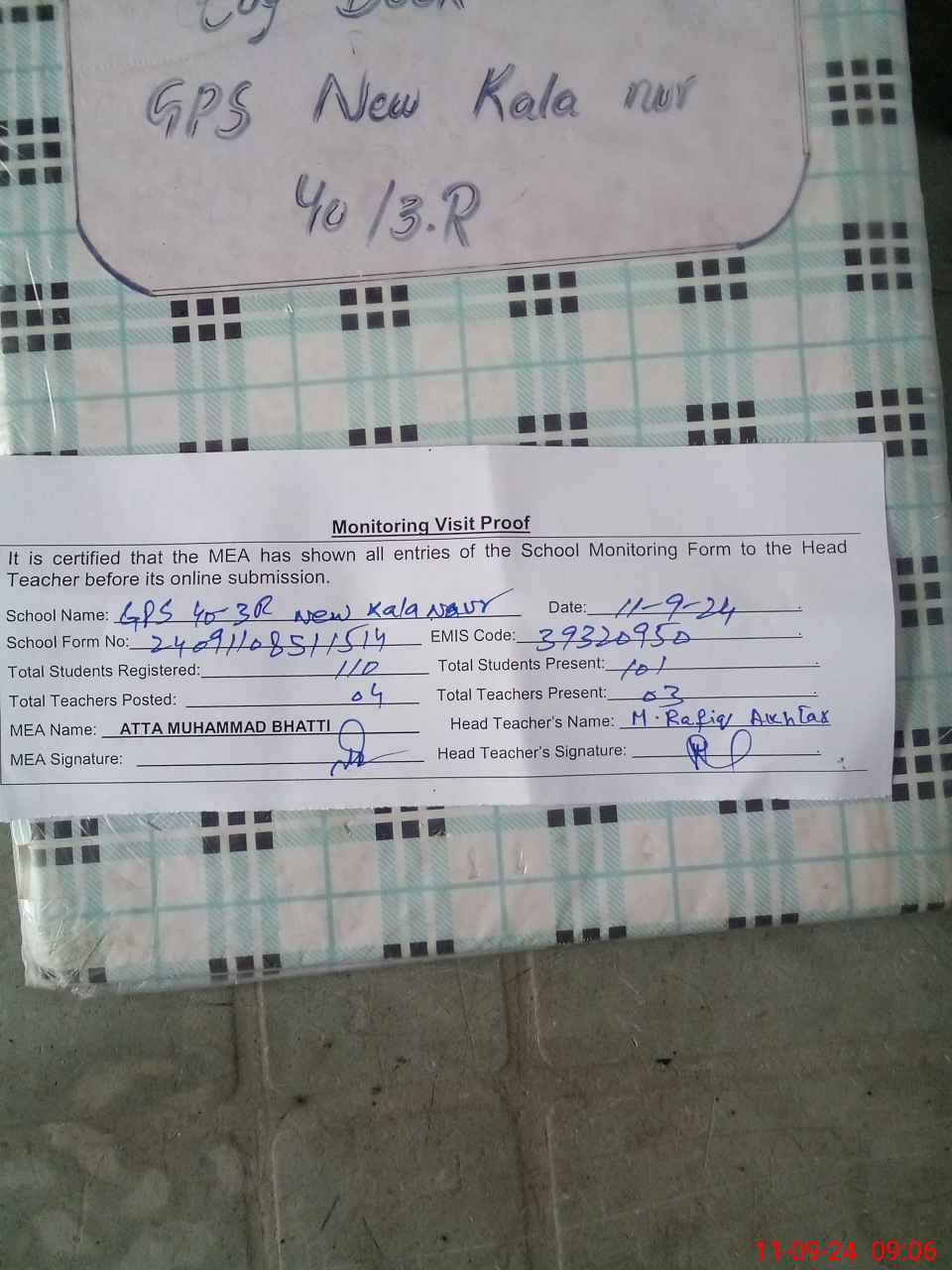 | EMIS Code: 39320950 | Name of School: GPS 40/3.R NEW KALA NAUR | |||