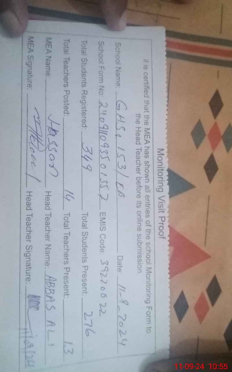 | EMIS Code: 39220022 | Name of School: GHS 153 EB | |||