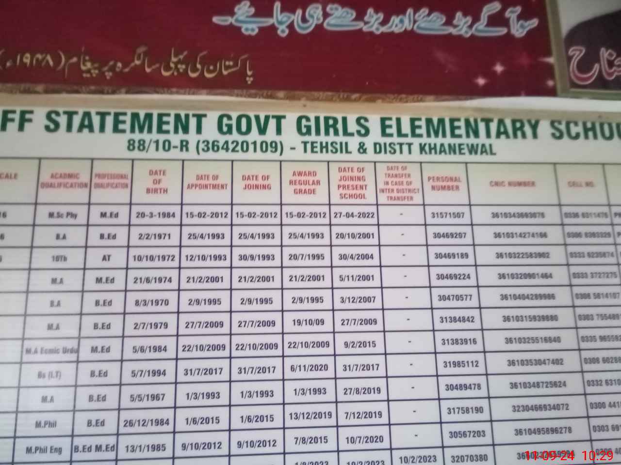 | EMIS Code: 36420109 | Name of School: GGES 88/10-R, KHANEWAL | |||