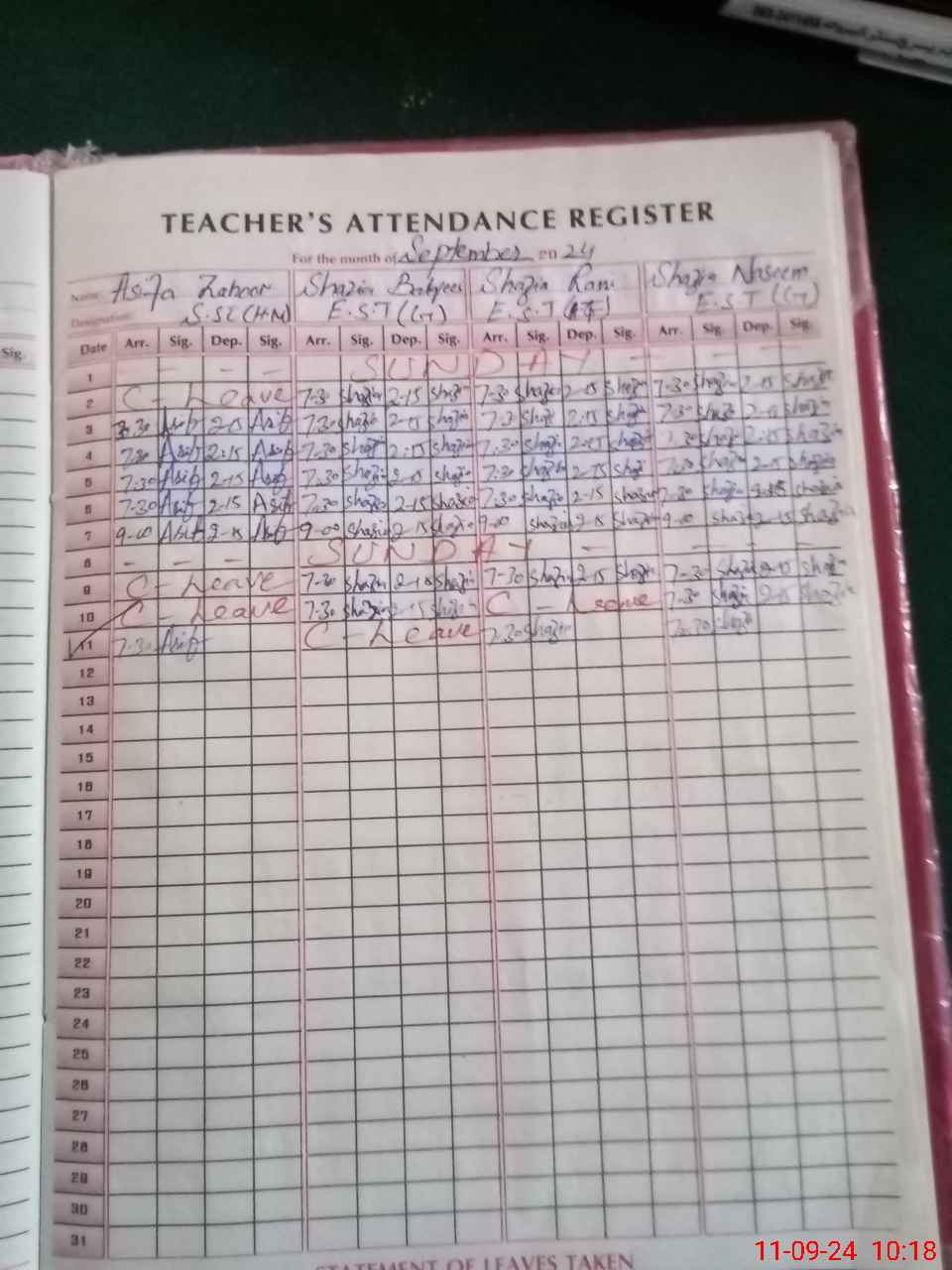| Name: As**** Za**** Designation: (School Headmaster's/Headmistress's) S.S.T. Phone/Cell Number: 03**** |