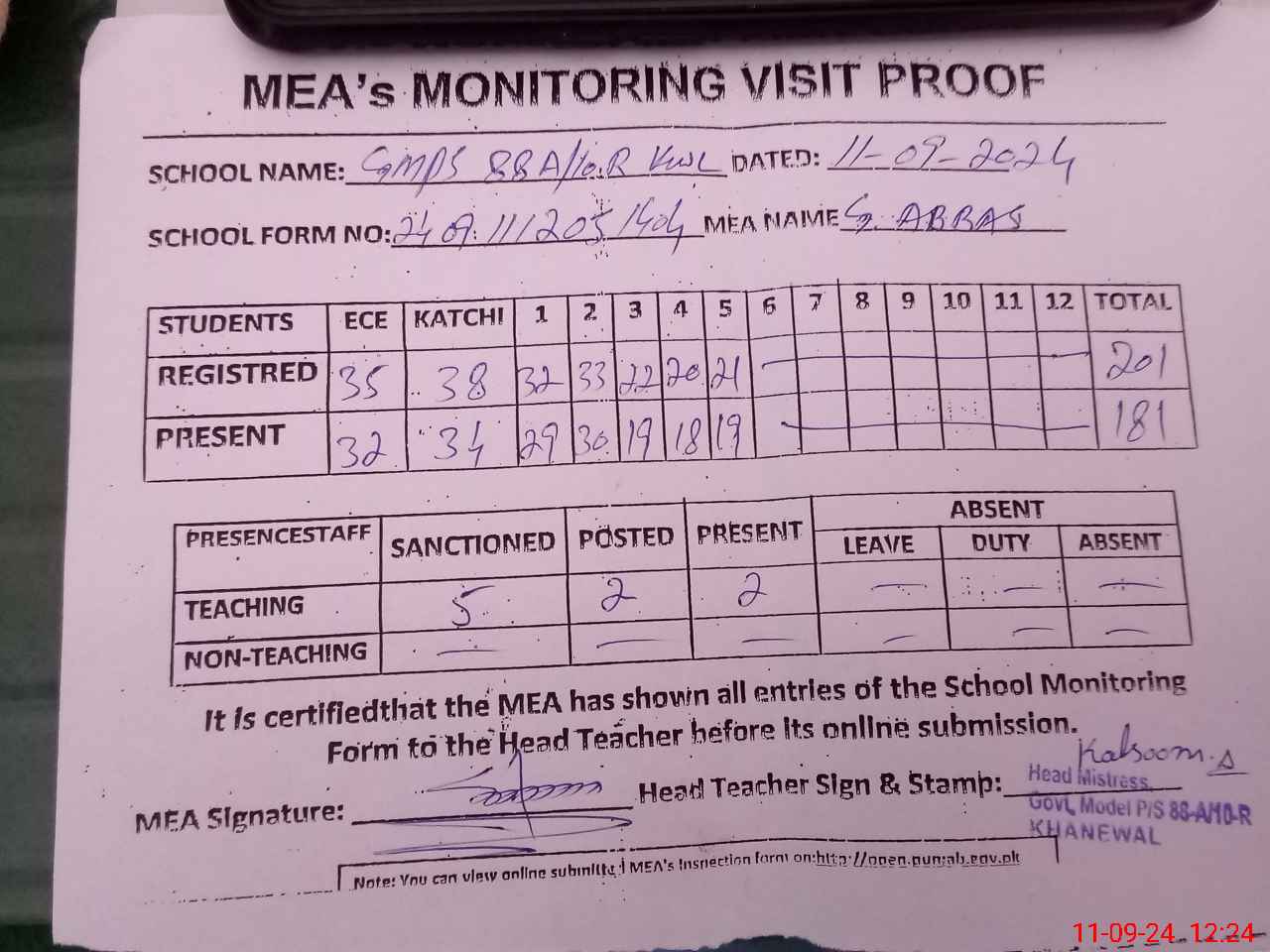 | EMIS Code: 36420429 | Name of School: GMPS 88-A/10-R, KHANEWAL | |||