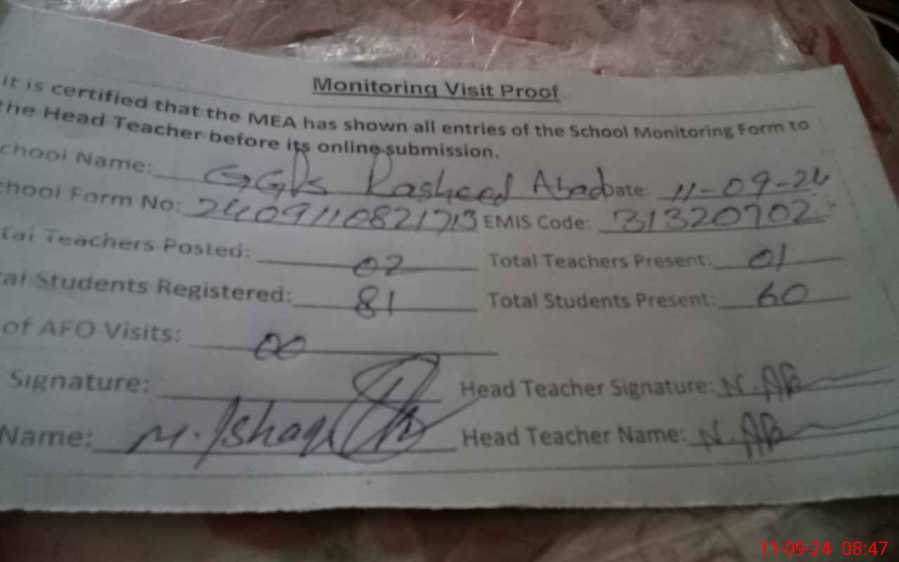 | EMIS Code: 31320702 | Name of School: GGPS RASHID ABAD | |||
