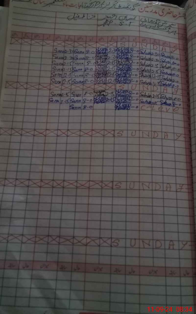 | CNIC | Full Name | Designation | R/C | Absence During Last Calender Month |