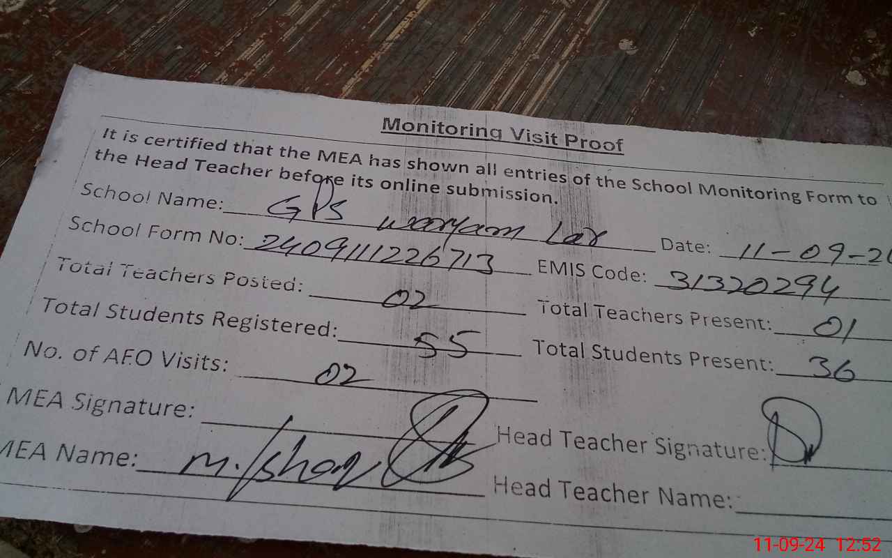 | Attendance Register | Head Teacher | MEA with School | Visit Proof |
