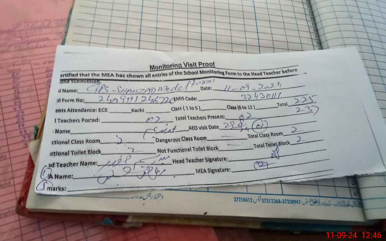 | EMIS Code: 32430111 | Name of School: GPS SHAHZAD MODEL FARM | |||