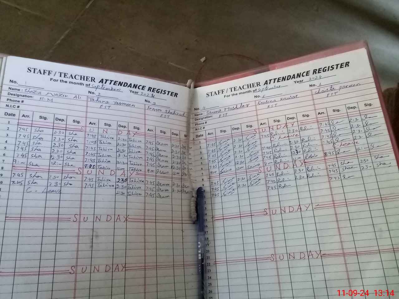 | CNIC | Full Name | Designation | R/C | Absence During Last Calender Month |