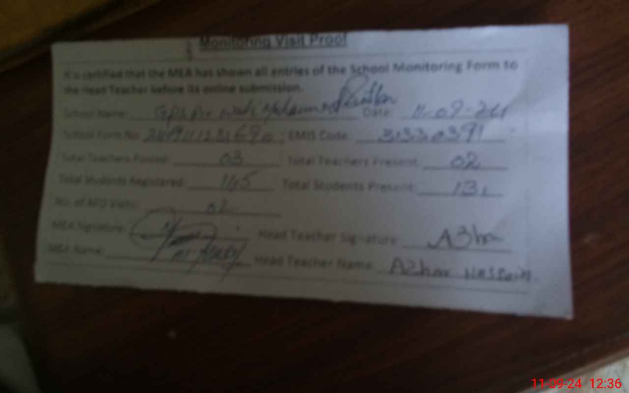 | EMIS Code: 31330391 | Name of School: GPS PIR WALI MUHAMMAD SULTAN | |||