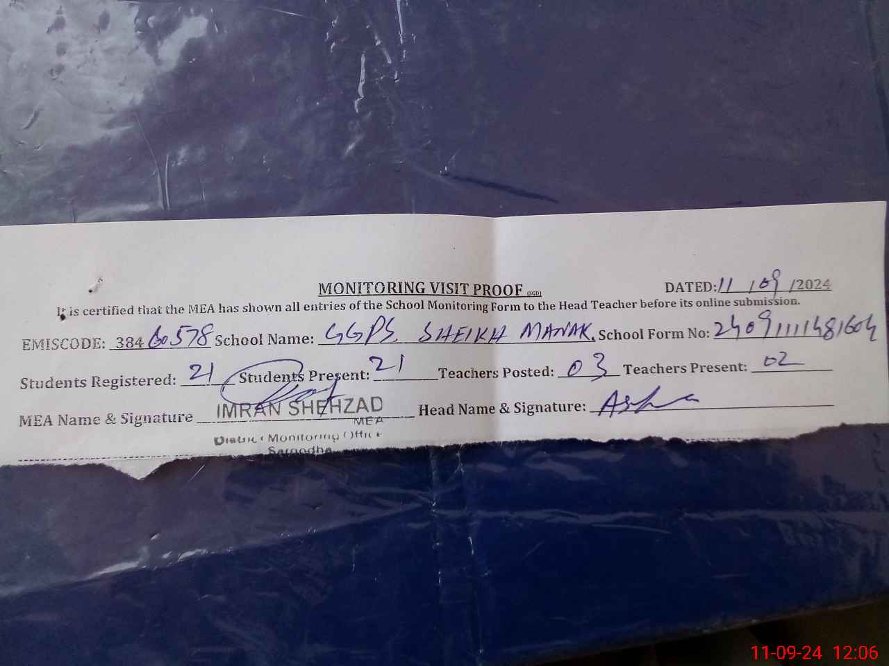 | EMIS Code: 38460578 | Name of School: GGPS DERA SHEIKH MANIK | |||