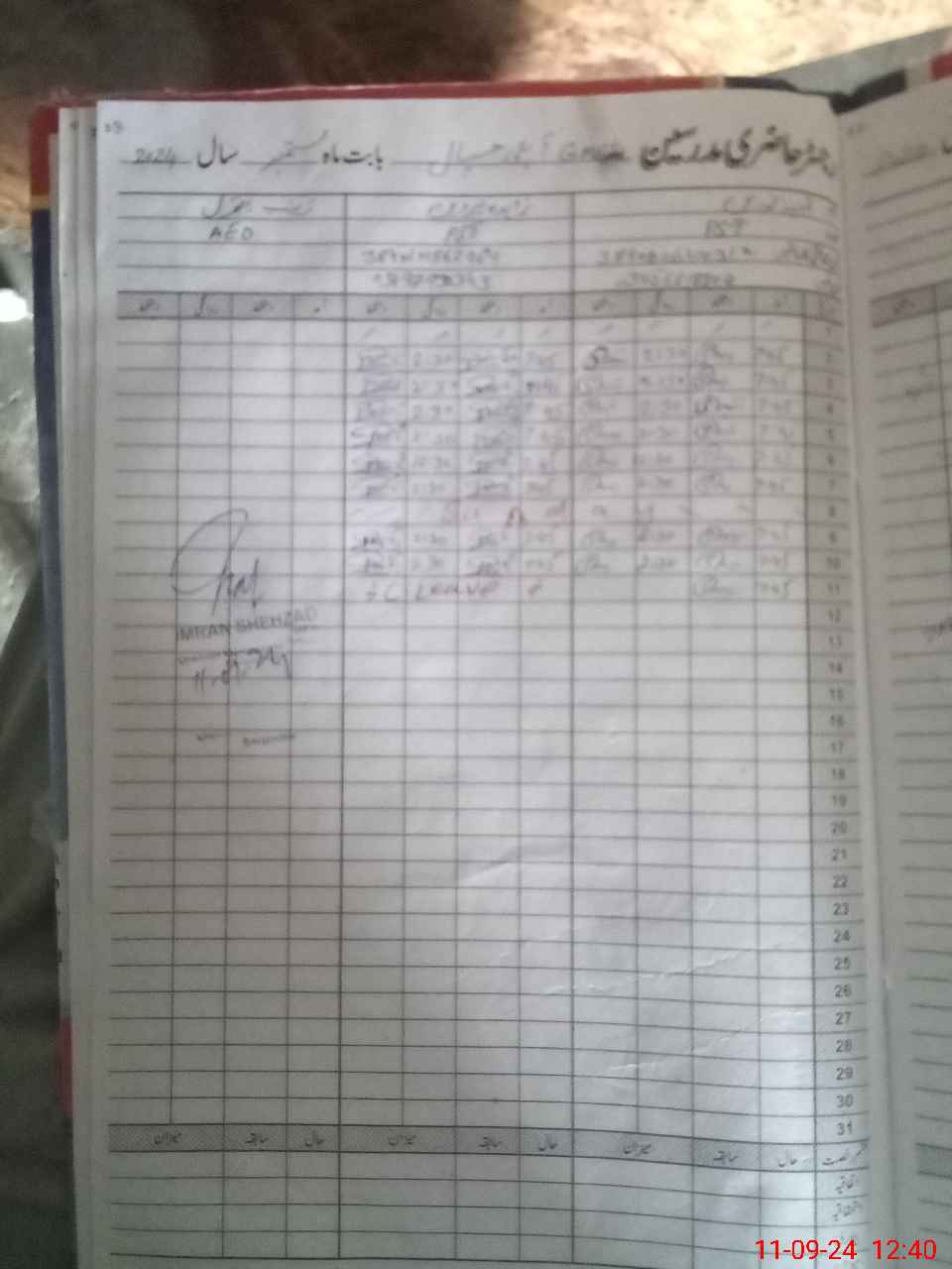 | CNIC | Full Name | Designation | R/C | Absence During Last Calender Month |