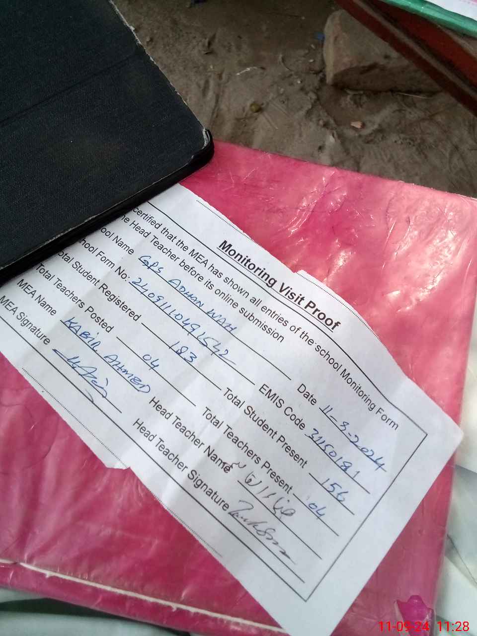 | Attendance Register | Head Teacher | MEA with School | Visit Proof |