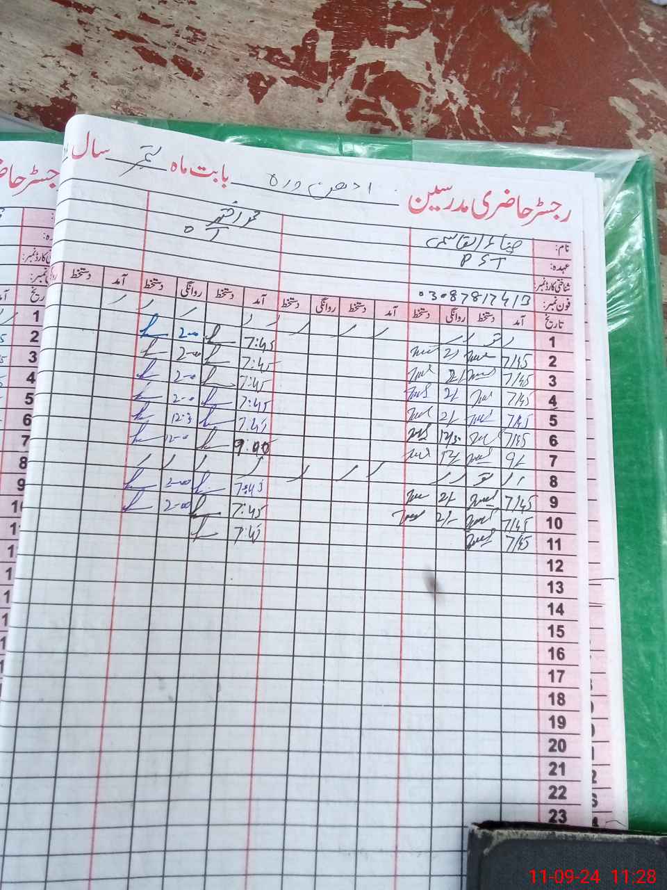 | Name: ZI**** ULQA**** Designation: (School Headmaster's/Headmistress's) PST Phone/Cell Number: 03**** |
