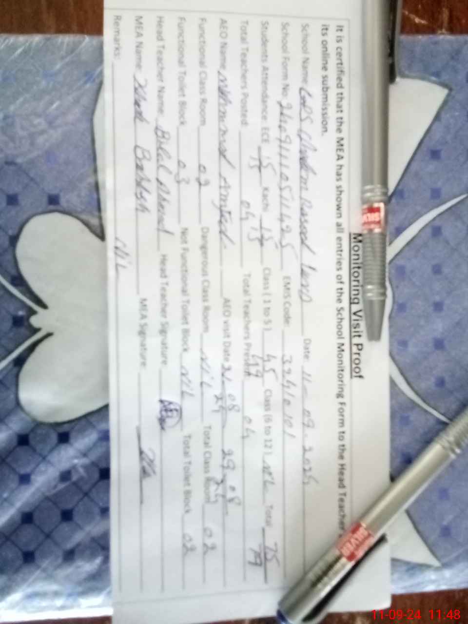 | Certified that this School was Inspected by the Undersigned MEA/DMO Today and the Information Stated Above is as Per Record. | |||||