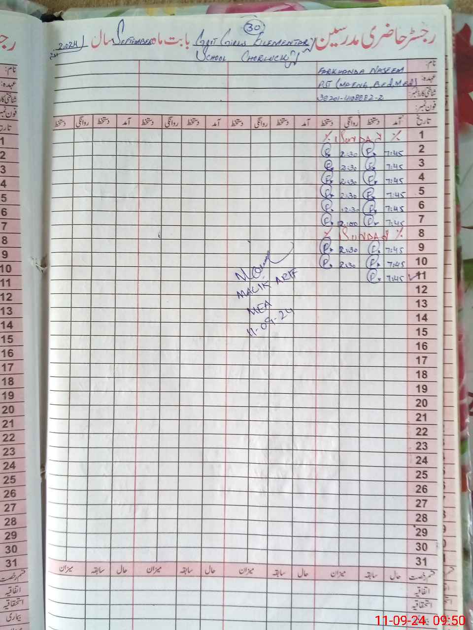 | Name: Uz**** No**** Designation: (School Headmaster's/Headmistress's) PST Phone/Cell Number: 03**** |