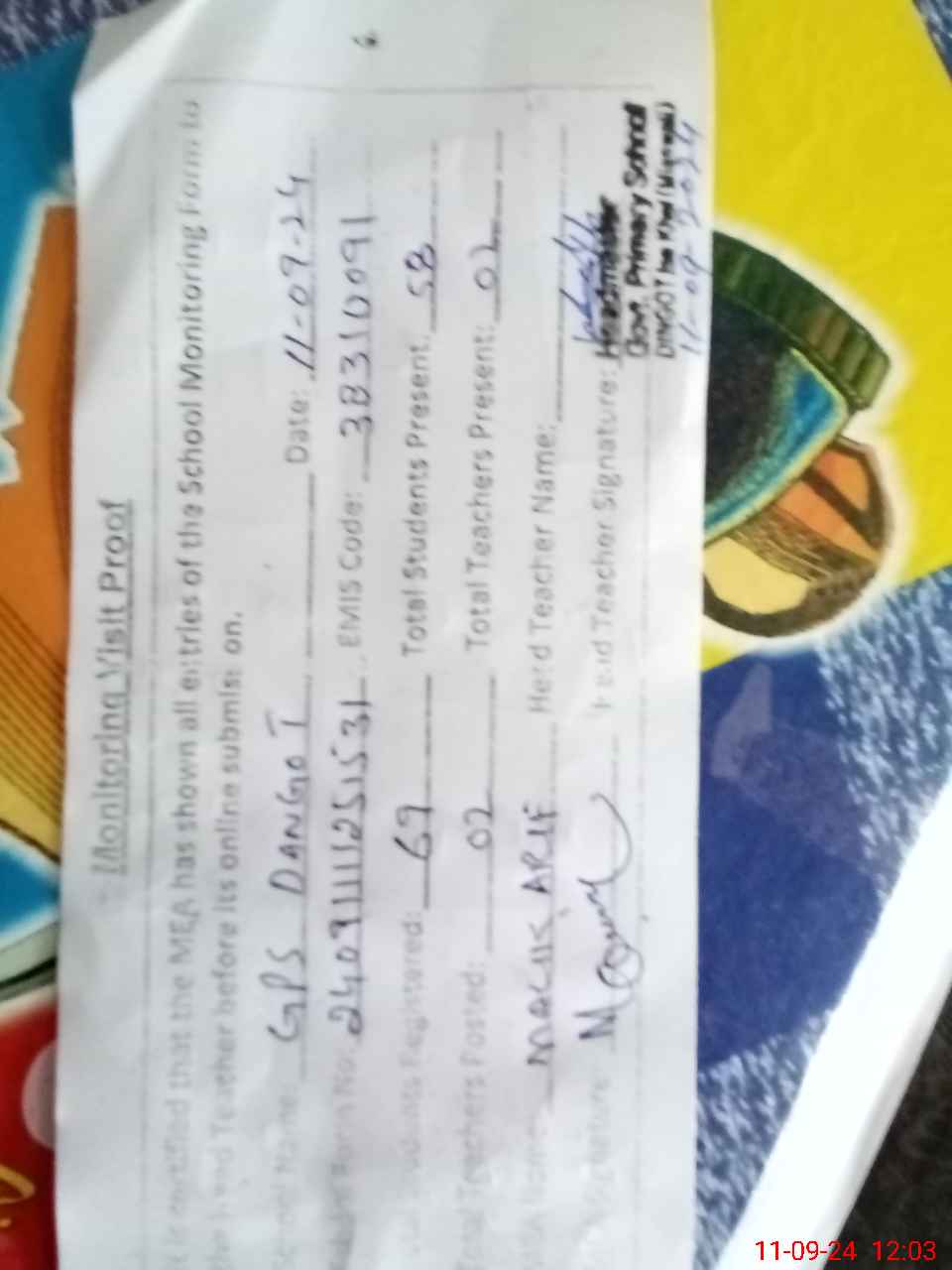 | EMIS Code: 38310091 | Name of School: GPS DANGOT | |||