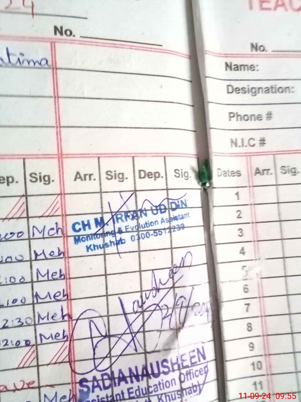 | Attendance Register | Head Teacher | MEA with School | Visit Proof |