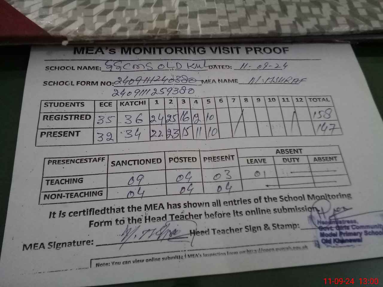 | EMIS Code: 36420356 | Name of School: GGCMS OLD KHANEWAL | |||