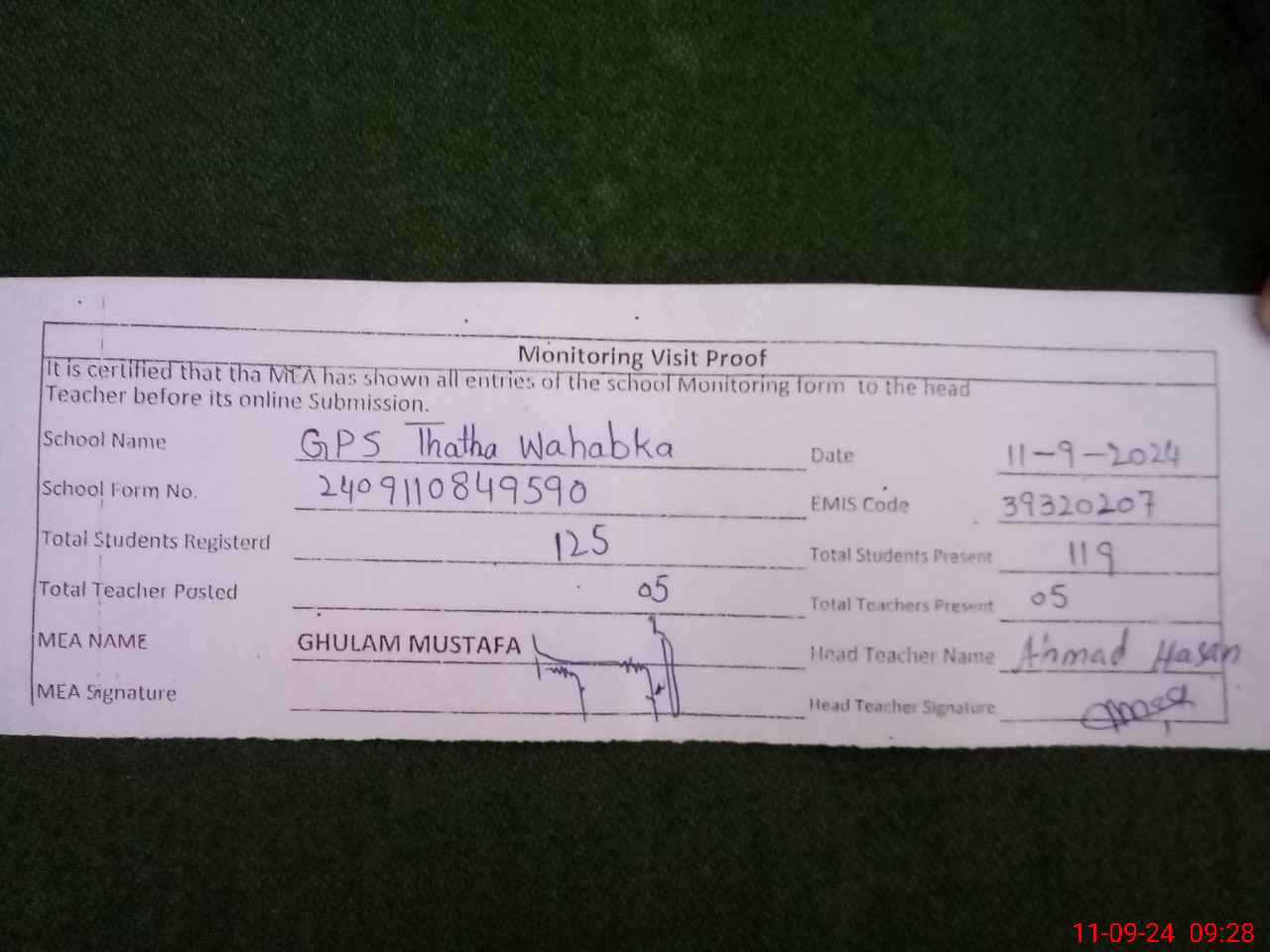 | EMIS Code: 39320207 | Name of School: GPS THATHA WAHAB KA | |||