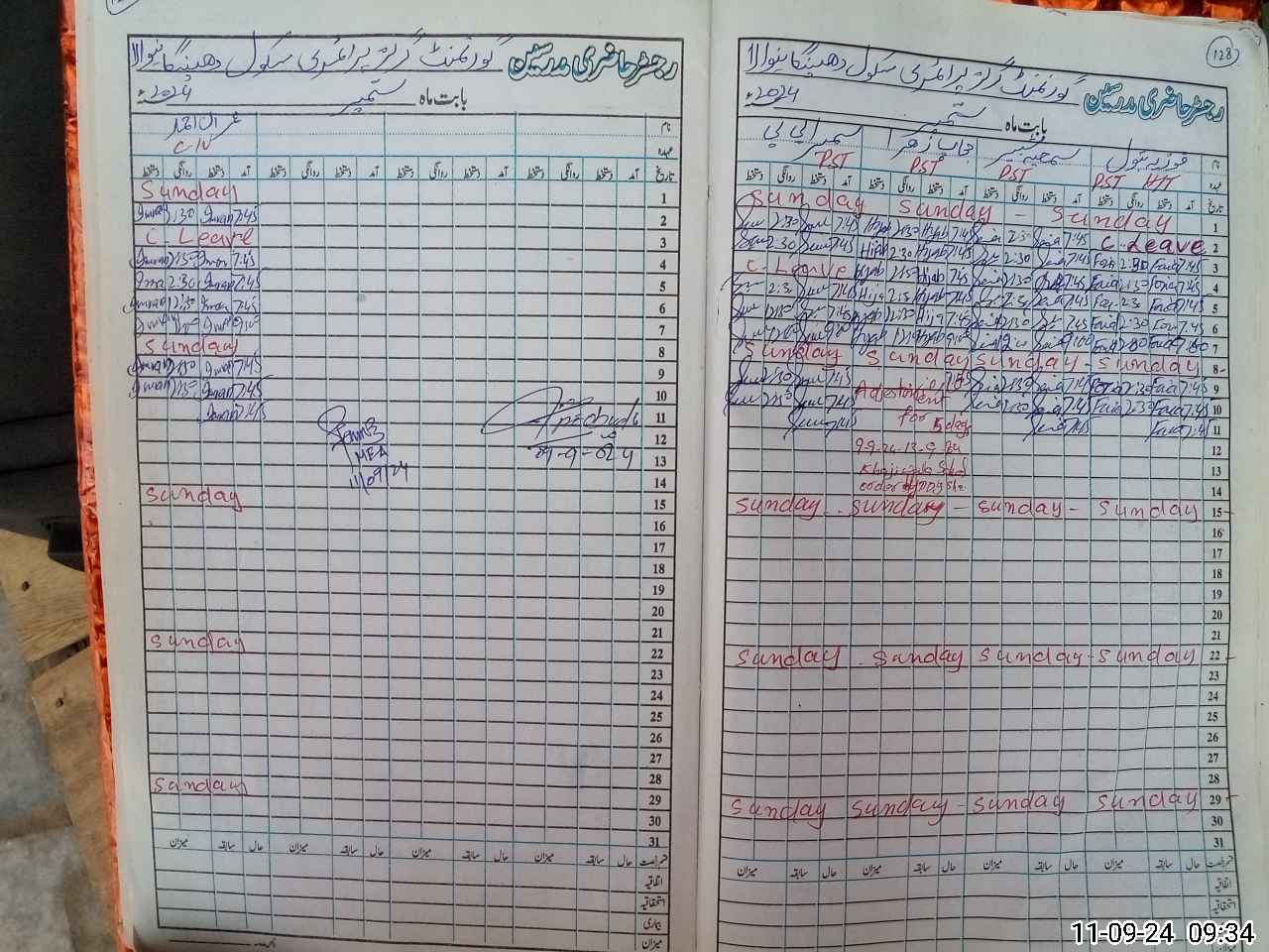 | CNIC | Full Name | Designation | R/C | Absence During Last Calender Month |