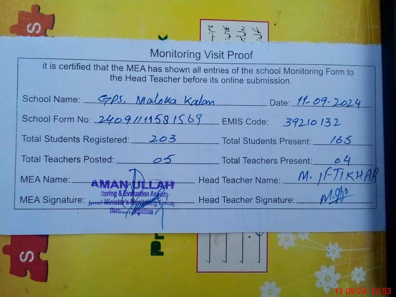 | EMIS Code: 39210132 | Name of School: GPS MALOOKA KALAN | |||