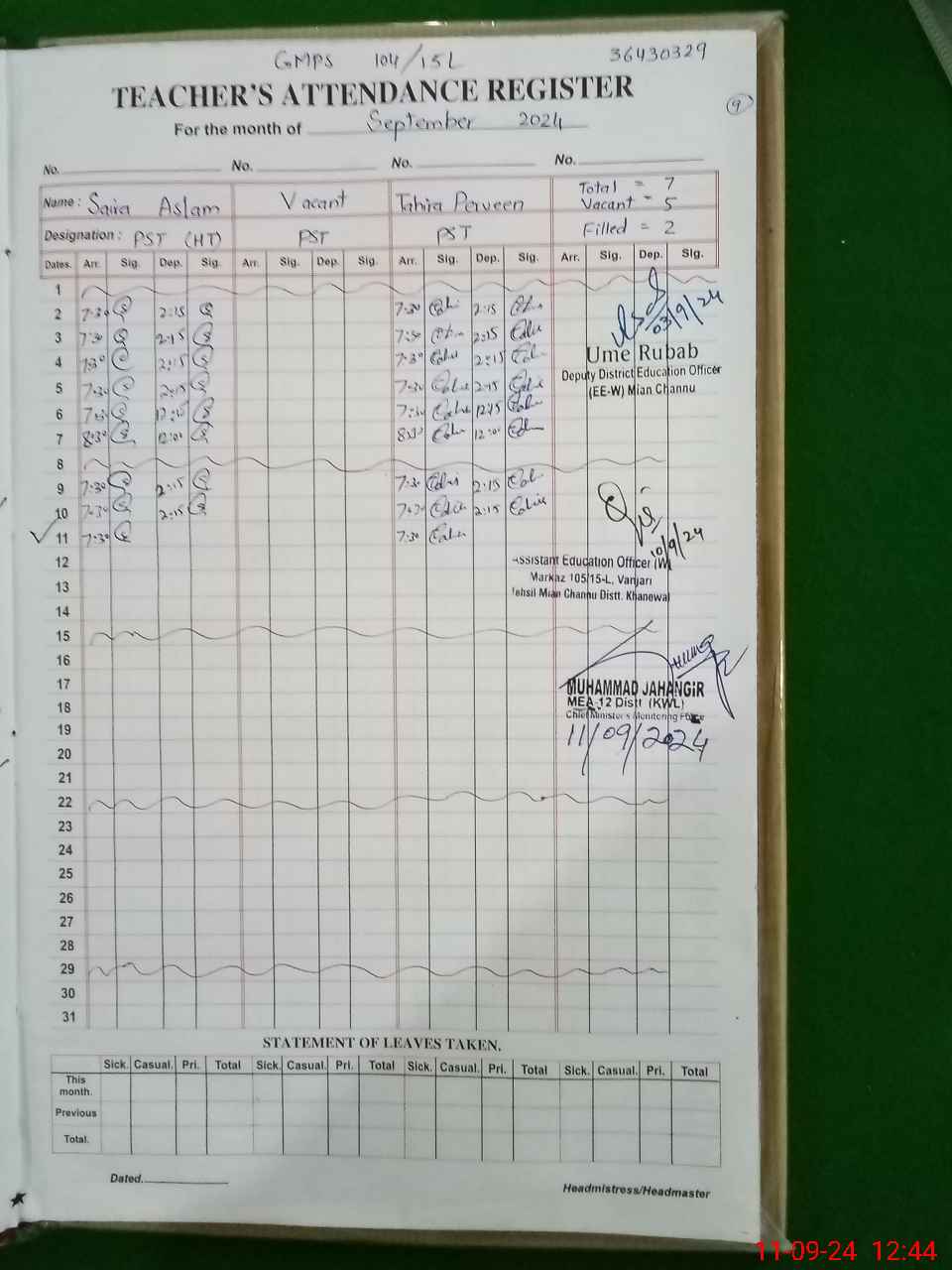 | EMIS Code: 36430329 | Name of School: GMPS 104/15-L, MIAN CHANNU | |||
